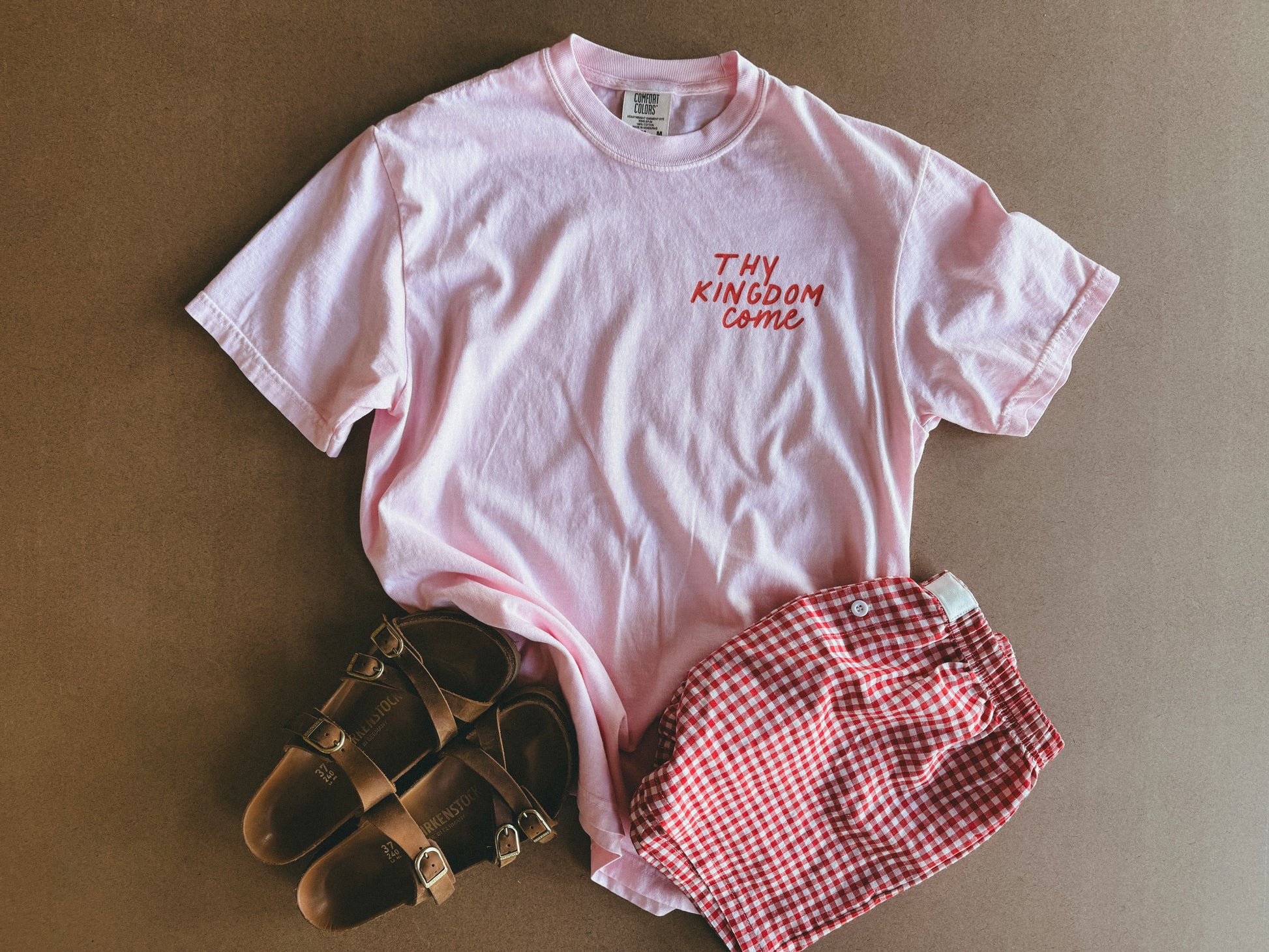 Celebrate the journey thru faith with our vibrant 'Thy Kingdom Come' shirt – a thoughtful gift with a colorful design. Meticulously crafted with Comfort Colors for comfort, this tee in unisex adult sizing is 100% ring-spun cotton. Double-needle stitching ensures lasting wear, while the absence of side-seams maintains its tubular shape. With a relaxed fit, this christian tee is perfect for the sunny season, embracing style for the Christ follower.